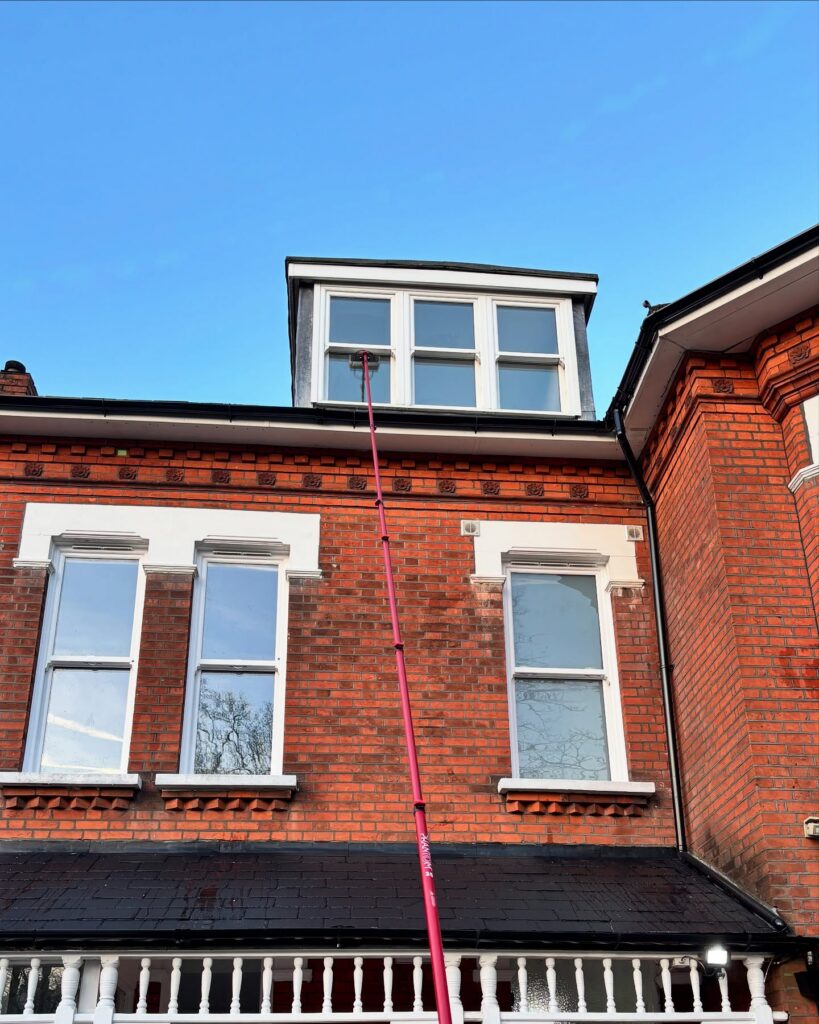 Professional window cleaning using specialist tools and purified water systems to achieve a streak-free shine, enhancing natural light and maintaining a clear, polished appearance inside and out.